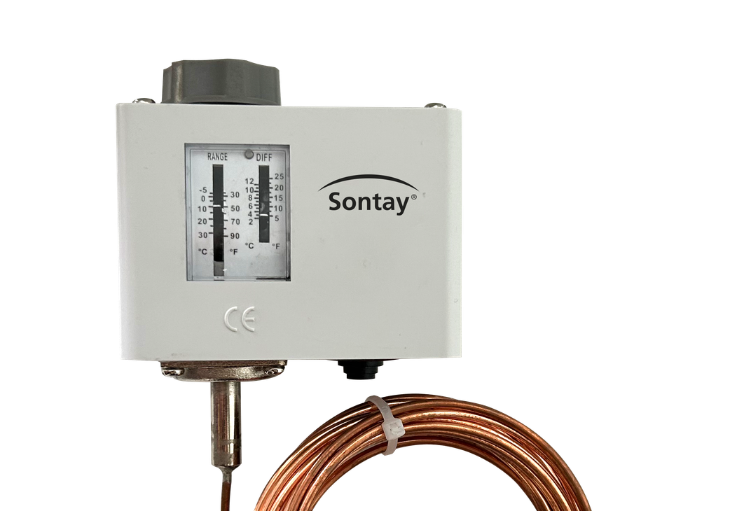 Termostato antigelo capillare che offre un'uscita di commutazione in base alla temperatura media misurata su un capillare di 2 m o 6 m.